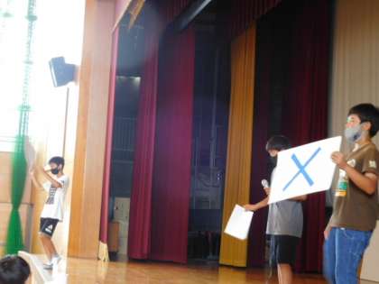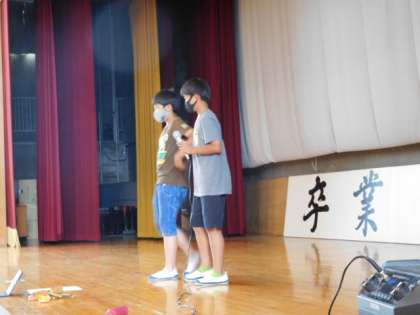 6/30(水)6 公開日 2021/06/30 更新日 2021/06/30 全校 大放課。児童会が、ペア学年の交流を深めるために「ペアでクイズ大会」を企画してくれました。感染予防のため、男女に分けて参加数を減らして行いました。今日は6年・1年の男子ペアです。