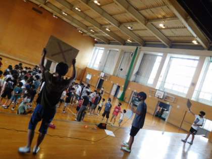 6/30(水)7 公開日 2021/06/30 更新日 2021/06/30 全校 学校のことをどれだけ知っているかを問う○×クイズです。正解と思う方へペアで仲よく移動します。高学年の思いやりが発揮される場面がたくさんありました。児童会役員はよりよい活動にするため反省会を行ってくれました。