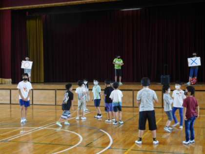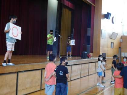 7/2(金)4 公開日 2021/07/02 更新日 2021/07/02 全校 今日の大放課は2・4年男子のペアでクイズ大会です。残念ながら、全5問のうち4問目で全滅してしまいましたが、みんなペアで楽しめました。