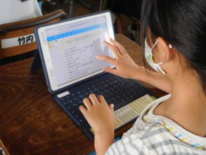 7/2(金)11 公開日 2021/07/02 更新日 2021/07/02 全校 5年体育です。リレーのやり方を動画で見ながら、デジタル端末にメモしていきます。メモしたことをもとにチームで話し合い、記録に挑戦します。