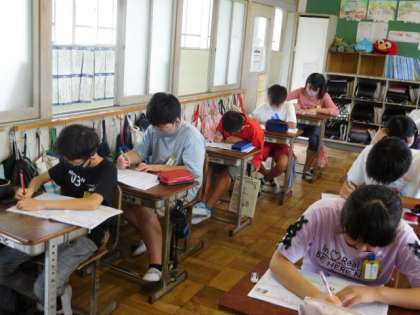 7/2(金)12 公開日 2021/07/02 更新日 2021/07/02 全校 6年算数です。分数の割り算の復習問題に取り組んでいます。学習したことがどれだけ身についているかを確かめる大事な時間です。