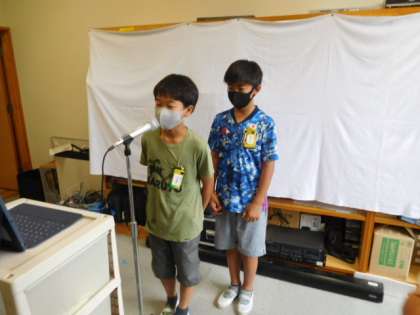 校長先生の話では、6年生が公園のゴミ拾いをしてくれたこと、5年生が林間学校ではきものそろえの精神を発揮してくれたこと、児童会役員が「ペアでクイズ大会」で学校のために頑張ってくれていることを紹介しました。
