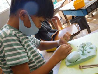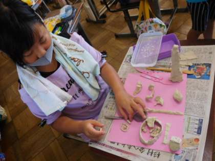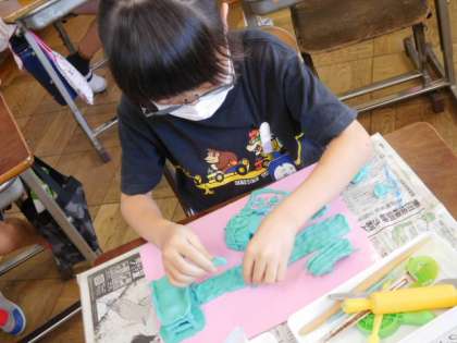 9/10(金) 3年生 公開日 2021/09/10 更新日 2021/09/10 3年生 図工です。「ねん土マイタウン」の製作です。粘土を使って自分の住んでみたい街を創っています。創造力ふくらむ楽しい時間ですね。