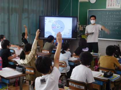 10/11(月) 5年生 公開日 2021/10/11 更新日 2021/10/11 5年生 社会です。工業がさかんな場所が、なぜ、太平洋ベルトに集まっているか考えています。海に面している、土地が平らなどこれまで学習してきたことを振り返りながら追究しています。