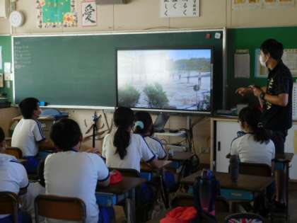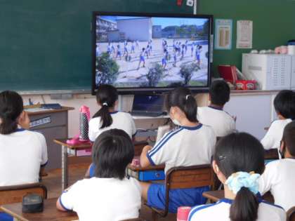 体育です。自分達が踊ったソーラン節の録画を見て、さらによくするためにはどうしたらよいか話し合っています。最高の演技をしたいという熱い気持ちが伝わってきます。