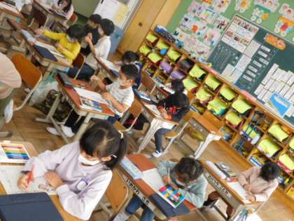 10/19(火) 1年生 公開日 2021/10/19 更新日 2021/10/19 1年生 生活科です。6年生が踊るソーラン節をタブレット端末に録画し、1年生に見せてくれました。迫力があってカッコイイソーラン節を見せてもらったので、お礼の手紙を書いています。ペア学年の心温まる交流です。