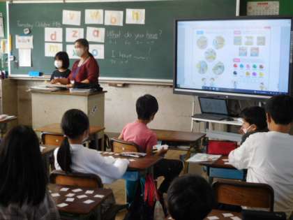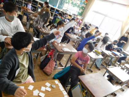 10/19(火) 4年生 公開日 2021/10/19 更新日 2021/10/19 4年生 外国語活動です。「What do you have?/I have 〜.」のフレーズの練習です。アルファベットのカードを使って、そのカードをもっているかいないかを英語で応えます。