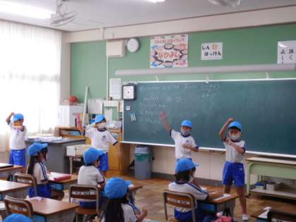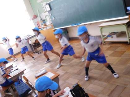 10/19(火) 1年生 公開日 2021/10/19 更新日 2021/10/19 1年生 体育です。オカリンピックが1日延びたので、さらに磨きをかけるため練習しています。お互いの踊りを披露して、もっとよくなるようにみんなで工夫し合っています。