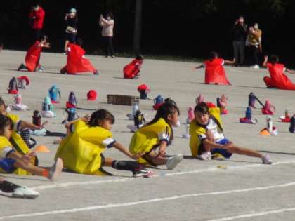1年生は初めてのオカリンピックです。全校で行えないのは残念ですが、それを感じさせない歩で一生懸命練習して臨み、見事なソーラン節を披露してくれました。