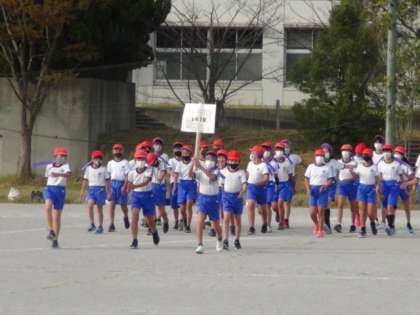 10/20(水) 6年生 公開日 2021/10/20 更新日 2021/10/20 全校 大トリは6年生です。乳方から気合いを入れてのスタートです。徒競走も最高学年にふさわしい力走を見せてくれました。