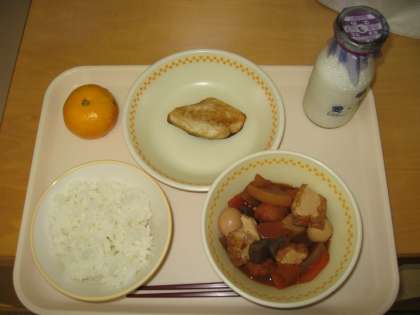 今日の献立は ごはん・ぎゅうにゅう さばのしおやき みそおでん みかん です。