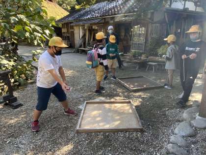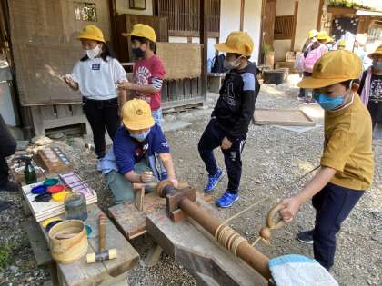10/26(火) 3年生 足助屋敷2 公開日 2021/10/26 更新日 2021/10/26 全校 足助屋敷では、自分で選んだ体験活動を行いました。 こまの絵付けでは、自分で色を付けたこまで、こま回しに挑戦しました!
