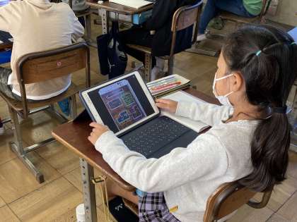 10/28(木) 授業風景 4年生 公開日 2021/10/28 更新日 2021/10/28 全校 4年生は、算数で面積の学習をしていました。どの花だんが一番広いか考えます。タブレット端末で画像に自分の考えを記入して、みんなで考え方を話し合いました。