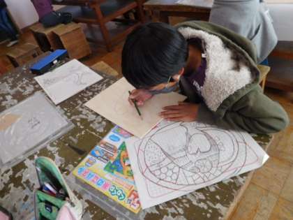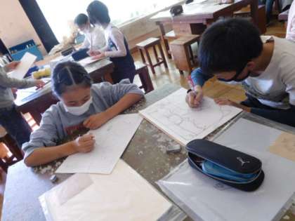 10/28(木) 5年生 公開日 2021/10/28 更新日 2021/10/28 5年生 図工です。「くねくね糸のこパズル」の製作が始まりました。糸のこを使ってピースを切って、パズルをつくります。今日はアイデアをひねって下描きを描いています。