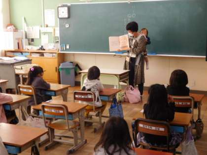 今日は、ととろの部屋のみなさんが、1年生と2年生に読み聞かせに来てくださいました。