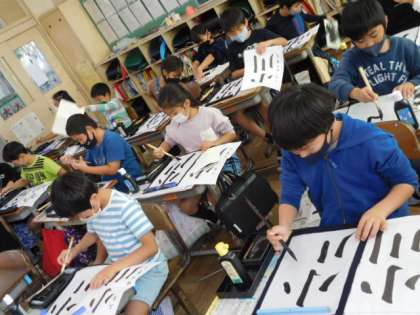 書写です。「小川」の最後の練習です。今日一番よく書けた作品をコンクールに出品します。