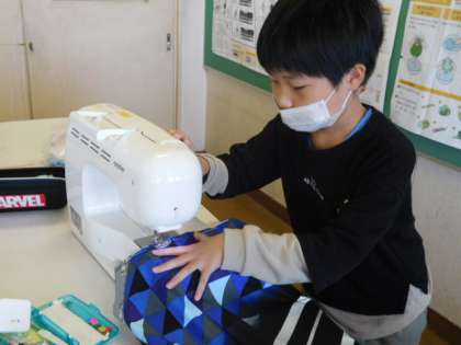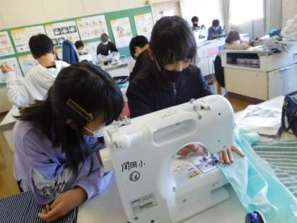 10/29(金) 5年生 公開日 2021/10/29 更新日 2021/10/29 5年生 家庭科です。エプロンの製作も中盤戦にはいりました。ミシンの使い方にもずいぶん慣れて、直線縫いはお手の物です。