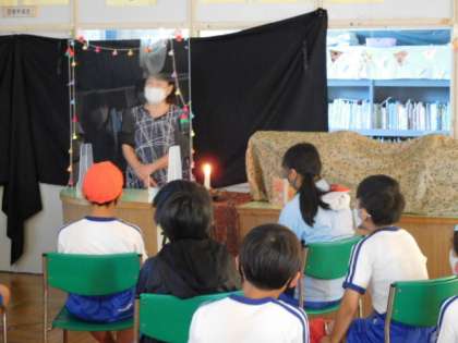 今朝は5年生がストーリーテリングを行っていただきました。今日も子どもたちの創造力を伸ばしていただけました。