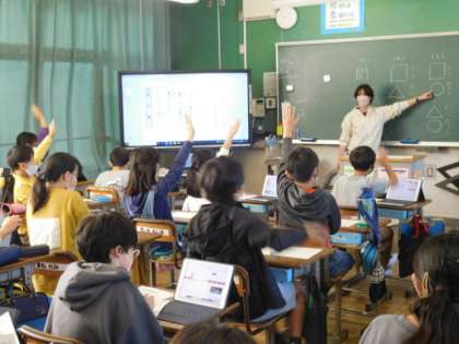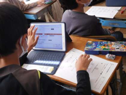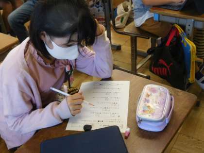 11/5(金) 5年生 公開日 2021/11/05 更新日 2021/11/05 5年生 国語です。「カンジー博士の暗号解読」の学習です。同音異義語の学習ですが、謎解きになっていて、暗号を解きながら楽しんで学習をしています。タブレット端末を辞書代わりにして暗号を解いていきいます。