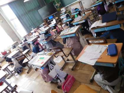 2時間目に、地震避難訓練を行いました。1学期に続き2回目ですが、今回は予告なしでの訓練です。緊急地震速報が流れた瞬間、とても素早く机の下に潜る1次避難ができました。命を守る意識の高さを感じます。