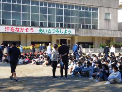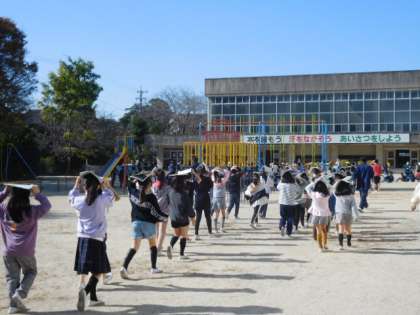その後の2次避難も「おさない、はしらない、しゃべらない、もどらない」の「お・は・し・も」をしっかり守り、避難時間も驚異的な速さで行うことができました。さすが岡田っ子です。