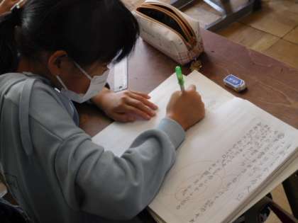 3年生 公開日 2021/11/05 更新日 2021/11/05 3年生 国語です。「すがたをかえる大豆」の学習です。文章全体の組み立てについて考えています。文章全体を、はじめ、中、終わりに分け、それぞれが何を伝えようとしているか読み取っていきます。