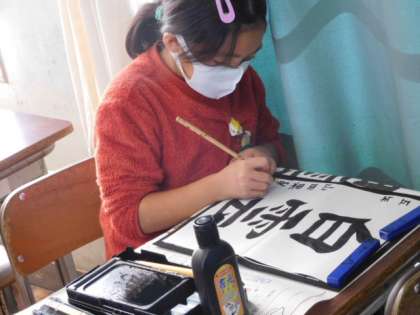 11/8(月) 5年生 公開日 2021/11/08 更新日 2021/11/08 5年生 書写です。「白雲」の練習です。画数の少ない字と多い字の配置のバランスを取って書くのが難しいですね。練習を重ねて完成度を上げていきます。