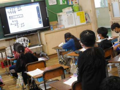 11/9(火) 3年生 公開日 2021/11/09 更新日 2021/11/09 3年生 算数です。387×4のように3けた×1けたの筆算の練習です。繰り上がりが増えた分ミスの内容に慎重に解いています。