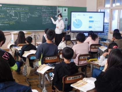 社会です。江戸時代の学習です。江戸時代の身分制度、士農工商についてみんなでまとめをしています。