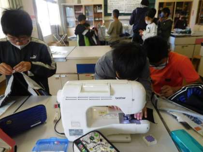 家庭科です。エプロン作りもゴールが見えてきました。ミシンの扱いにもずいぶん慣れ、手際よく縫い上がっていきます。