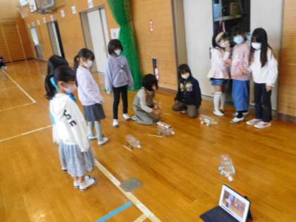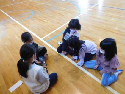 11/11(木) 2年生 公開日 2021/11/11 更新日 2021/11/11 2年生 生活科です。「1年生と遊ぶ会」本番です。練習の甲斐あって、1年生に上手に説明して、遊び方が伝えられたようです。