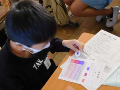 11/16(火) 5年生 公開日 2021/11/16 更新日 2021/11/16 5年生 今日は歯科衛生士さんによる「歯磨き指導」を行っていただきました。歯磨きの大切さや歯の病気などを学びました。歯の汚れチェックも実施し、自分の歯の状態も確認できました。大事な歯を守る意識が高まったようです。