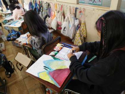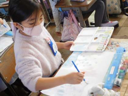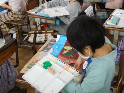 11/17(水) 3年生 公開日 2021/11/17 更新日 2021/11/17 3年生 図工です。「読書感想画」を描いています。下描きを終え、彩色が始まりました。イメージ通りの色が付けられるといいですね。