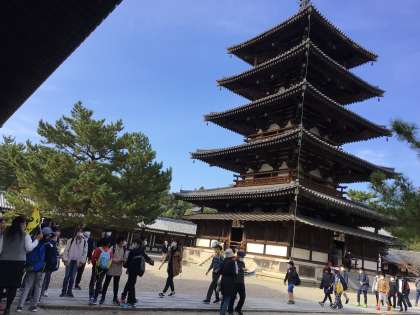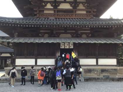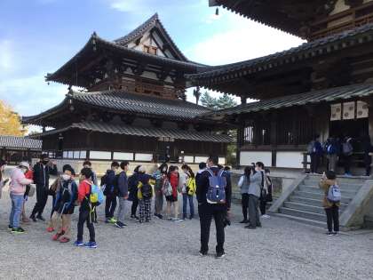 学級ごとに法隆寺の見学です。本物の本堂と五重塔に感嘆の声があがっています。