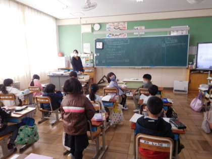 11/29(月) 1年生 公開日 2021/11/29 更新日 2021/11/29 1年生 算数です。「けんたさんのまえに7人います。けんたさんは、まえからなんばんめですか」という問題を考えています。序数としての数を学んでいます。