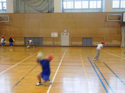 12/7(火) 1年生 公開日 2021/12/07 更新日 2021/12/07 1年生 体育です。ボールと仲よにしなるためにボールをついたり、壁に当てたり、高く投げてキャッチしたりと、いろいろな形でボールに親しんでいます。