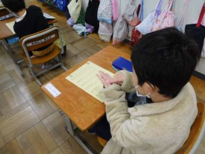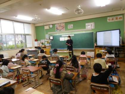 12/7(火) 1年生 公開日 2021/12/07 更新日 2021/12/07 1年生 今日は3組が、「食の指導」を受けました。給食センターの方が、毎日おいしい給食を届けるために、一生懸命働かれていることを知り、給食に対する思いも少し変わったようです。