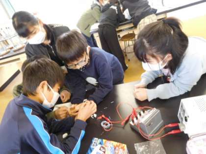 12/7(火) 5年生 公開日 2021/12/07 更新日 2021/12/07 5年生 理科です。電磁石の磁力を強くするにはどうしたらいいか、実験を行っています。コイルの巻き数を変えたり、電流の強さを変えたりし、条件を変えて電磁石の強さを確かめています。どんな結論が導き出せるでしょうか。