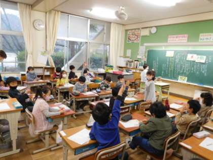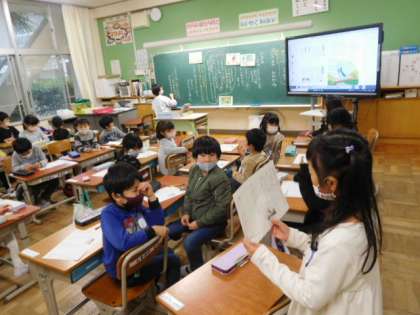 12/7(火) 1年生 公開日 2021/12/07 更新日 2021/12/07 1年生 道徳です。「はしのうえのおおかみ」で親切、思いやりについて考えます。子どもたちの発表の中に、朝会で伝えた「ふわふわことば」も聞かれました。きっと、あたたかい心をもって生活してくれると思います。