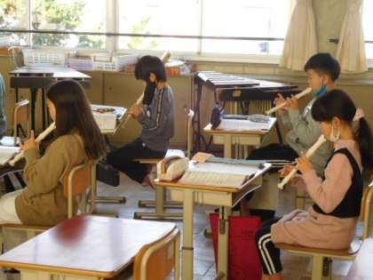 12/16(木) 3年生 公開日 2021/12/16 更新日 2021/12/16 3年生 音楽です。「せいじゃの行進」のリコーダー練習です。小節ごとに部分練習を繰り返して全体練習につなげていきます。