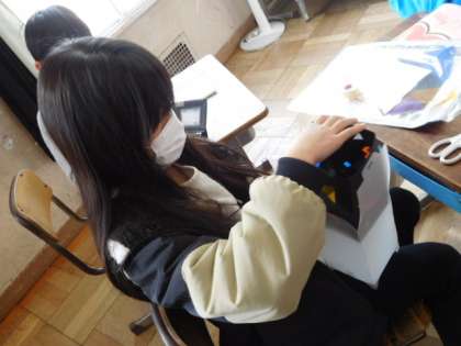 12/17(金) 3年生 公開日 2021/12/17 更新日 2021/12/17 5年生 図工です。「ファンタジーランプ」が完成間近です。画用紙を切り抜いた箇所にセロハンが貼られ、色取り取りのきれいな模様ができあがっていきます。