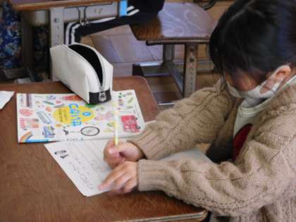 生活科です。「いままでのわたしについてしらべよう」の学習です。自分の小さい頃を調べるためにインタビューの計画を立てています。だれにどんなことを聞くと自分の小さい頃のことが分かるのか考えています。