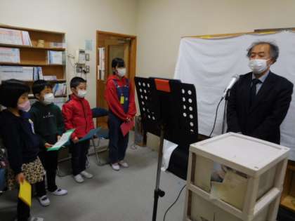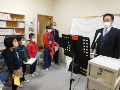 12/23(木) 終業式 公開日 2021/12/23 更新日 2021/12/23 全校 早いもので、2学期終業式を迎えました。式辞では、2学期の子どもたちの成長を伝えました。支えてくれた感謝の気持ちと成長したことをご家族に伝えてほしいとお願いしましたので、お家で聞いてあげてください。