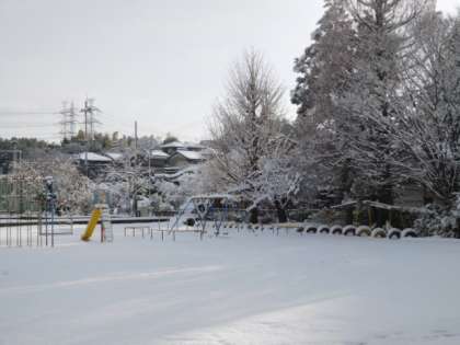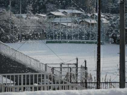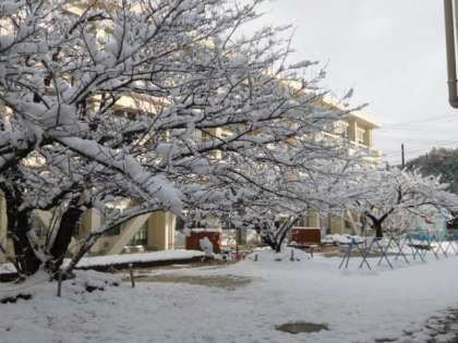 冬休み中は更新をお休みさせていただくとお伝えしましたが…。今朝は、岡田小学校も一面の雪景色です。