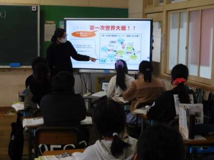 1/11(火) 6年生 公開日 2022/01/11 更新日 2022/01/11 6年生 社会です。「日露戦争後の日本と外国との関係」の学習です。日露戦争後、日本がどのようにして諸外国と関わり、第1次世界大戦につながっていったか考えています。