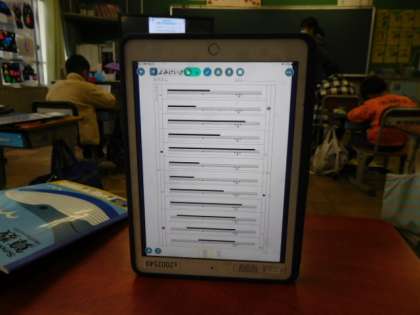 1/11(火) 2年生 公開日 2022/01/11 更新日 2022/01/11 2年生 算数です。「長さ」の学習の復習をしています。タブレット端末に問題が配信されました。いろいろな長さの棒に、ものさしが付けてあります。物差しを正確に読み取って長さを測ってくださいね。