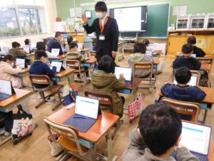 GIGAスクールサポータさんに学習支援ソフトNavimaの使い方の講習を受けています。最初は戸惑っていたようですが、どんどん使いこなしていきます。さすが、デジタル時代の子どもたちです。