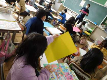 1/12(火) 公開日 2022/01/12 更新日 2022/01/12 2年生 図工です。「まどからこんにちは」の製作が始まります。窓を開けたら絵が見える作品を作っていきます。先生の説明をしっかり聴いて、早く作りたくてうずうずしているようです。