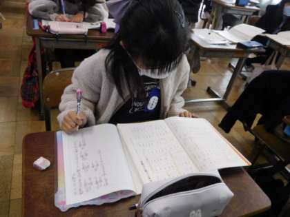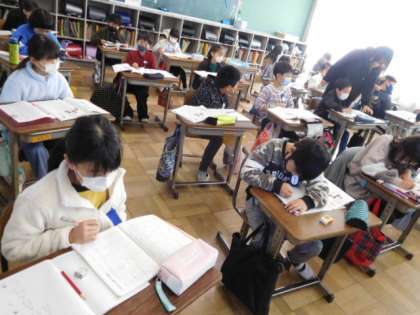 1/12(水) 3年生 公開日 2022/01/12 更新日 2022/01/12 3年生 国語です。「カンジーはかせの音訓カルタ」の学習です。「遠足だ遠くに行けてうれしいな」のように、漢字の音読み訓読みが混じったカルタを作ります。教科書で漢字を調べてかるた作りが始まりました。