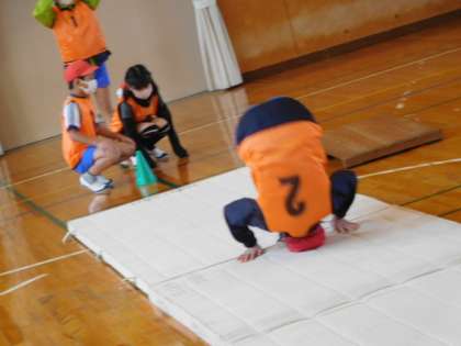 1/12(木) 4年生 公開日 2022/01/13 更新日 2022/01/13 4年生 体育です。「マット運動」の練習です。前転、後転、開脚前転といろいろな技をこなしていきます。体育館の空気は冷たいですが、子どもたちの動きはしなやかです。